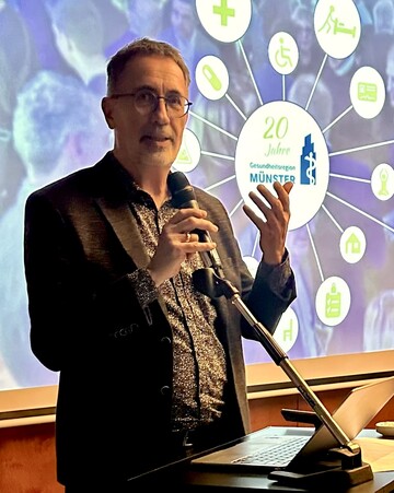 Im Anschluss präsentierte Rolf Wandres, Kommunikationsbeauftragter im Netzwerk, die neue Website der Gesundheitsregion Münster. Der Entwurf entspricht nun dem aktuellen Standard moderner User Experience und wurde von den Mitgliedern sehr positiv aufgenommen. Künftig werden Informationen und Anmeldungen digital und damit deutlich einfacher möglich sein – mit dem Ziel, Bürokratieaufwand zu reduzieren und Kontakt sowie Austausch im Netzwerk weiter zu erleichtern. Ab März 26 geht die neue Seite online!